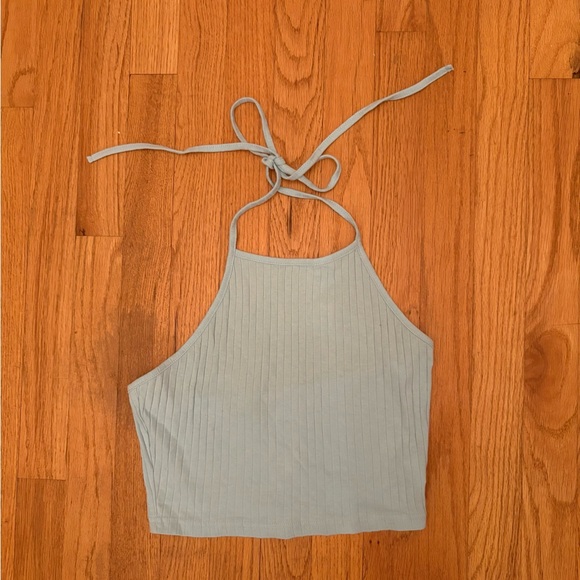 Elevate your style with this chic light blue ribbed halter top. Perfect for any casual outing. Never worn