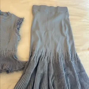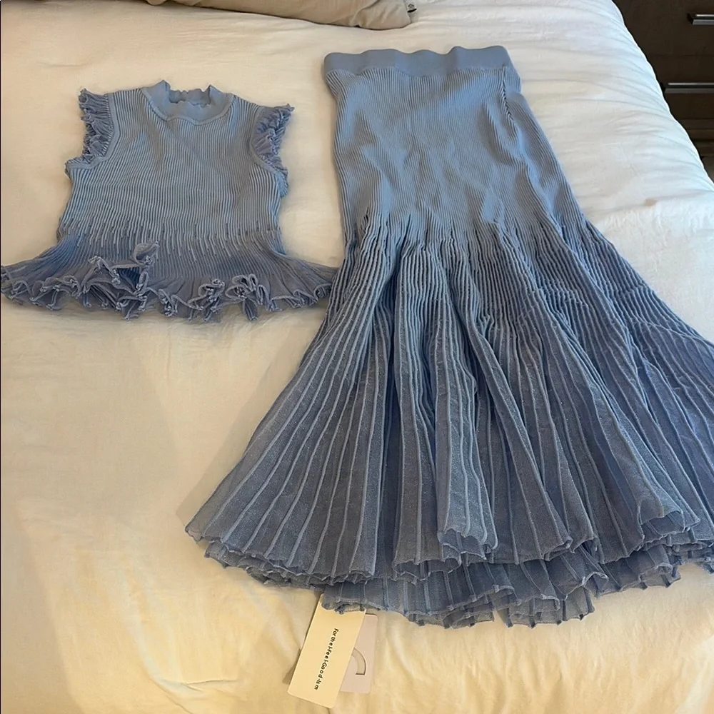 Elevate your style with this elegant light blue ribbed knot with mesh panel ruffle two piece. Perfect for any occasion, this top combines comfort and fashion effortlessly. NWT