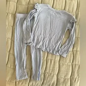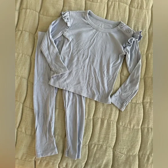 Color is “Baby’s Breath”. Looks more like a light dusty blue in person. Excellent, used condition! No stains or damage