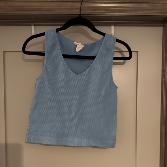 Elevate your wardrobe with this stylish light blue cropped ribbed top. Perfect for any casual outing.