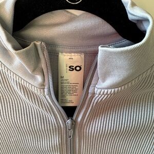 Light blue/purple ribbed define zip up jacket