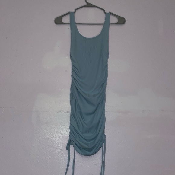 Light Blue Ribbed and Ruched Dress