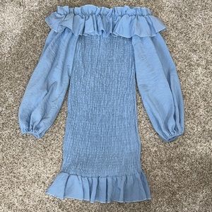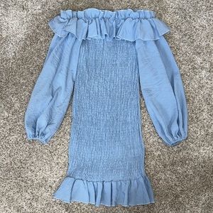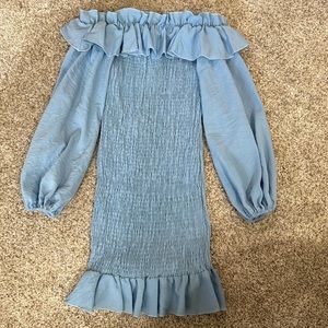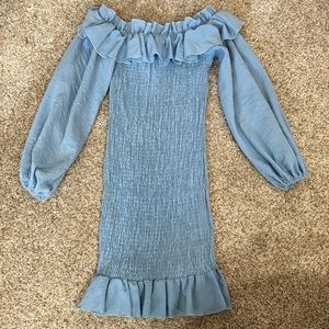 Light Blue Ruched Ruffle Dress