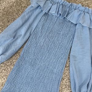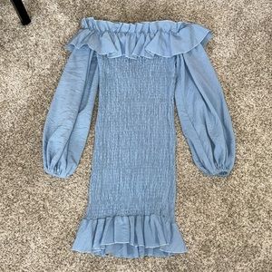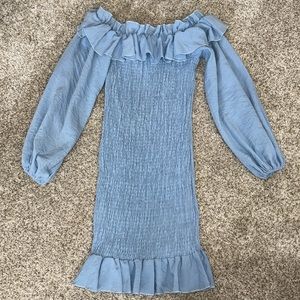 Light blue beautiful dress with ruching down the body part of the dress