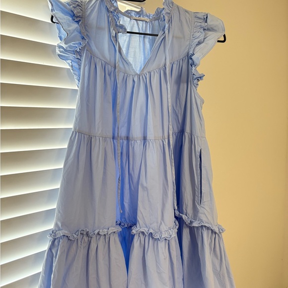 Charming light blue dress with ruffle. Size small, and has never been worn before. From a local boutique.