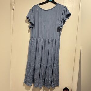 Chic blue dress with ruffle sleeves. Perfect for casual outings. New with tags. So comfortable.