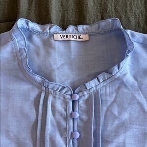 Vertiche Ruffle Sleeve Top Light Blue Fits like a Medium (see measurements in photos)