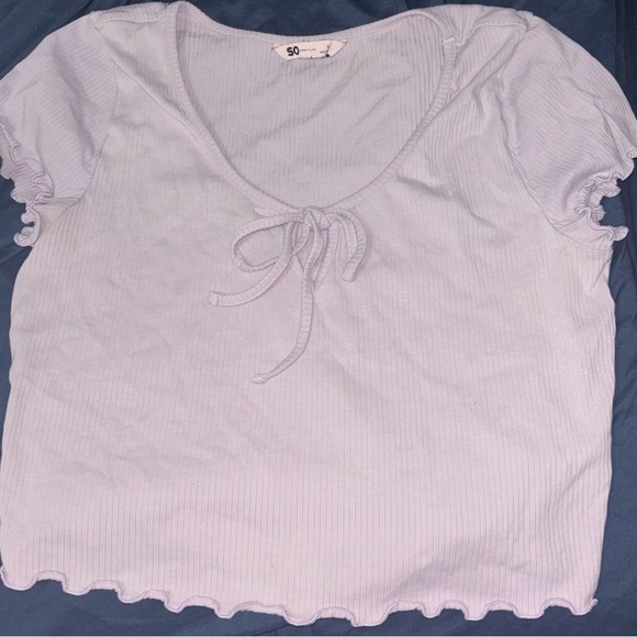 Light Blue Ruffle Trim Crop Top