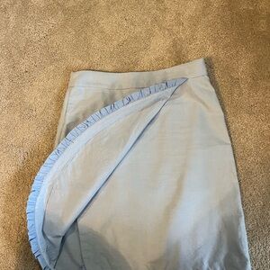 J. Crew light blue wrap skirt with ruffle detailing. Perfect for any occasion.