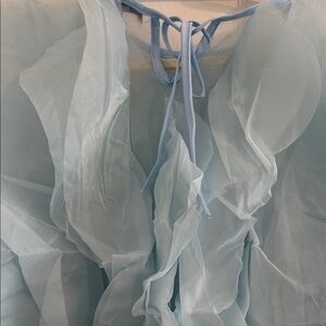 Elegant light blue blouse with ruffled design. Perfect for special occasions.pit to pit approx 21" length approximately 21" from top