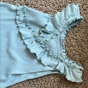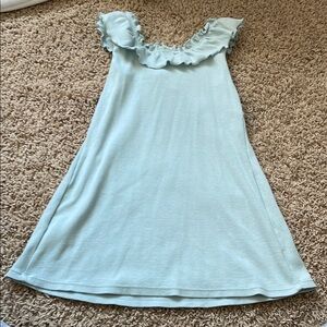 Charming light blue dress with playful ruffles, perfect for any occasion.