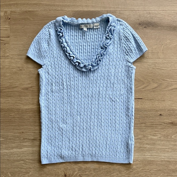 Light Blue Ruffled Knit Top