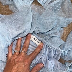 Elegant Pedal and Pup light blue maxi dress with ruffled layers. Perfect for special occasions. Worn one time for a wedding!