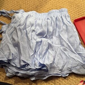 Stylish light blue shorts with ruffled details. Perfect for casual outings.