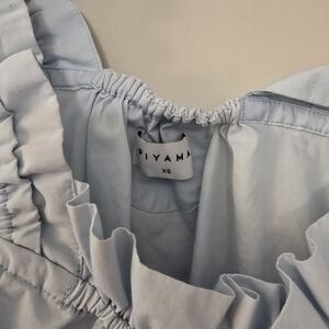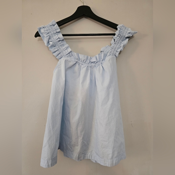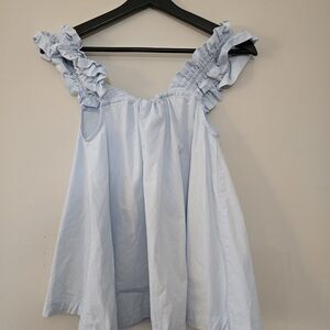 Charming light blue top with ruffled straps, perfect for any occasion.