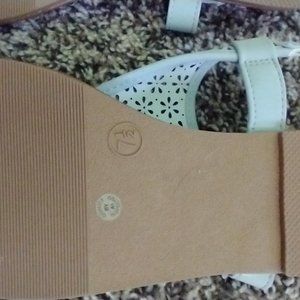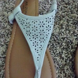 Cute light blue flat sandals, Arizona Jean Co., never worn, floral PU leather design, adjustable buckle. Size 7 1/2 (7.5), true to size.