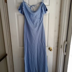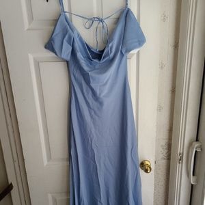 Light Blue Satin Off the Shoulder Cowl neck Dress