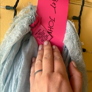 Light Blue Scarf with Lace Trim