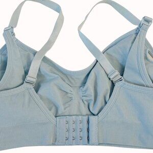 Light Blue Seamless Nursing Bra With Adjustable Straps Easy Access- Size L - 92% Nylon 8% Spandex Soft Stretch Comfort