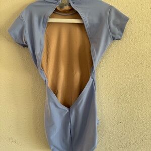 • Classic short sleeve leotard in a soft light blue shade