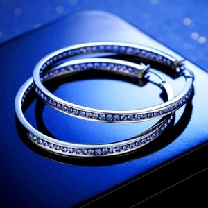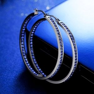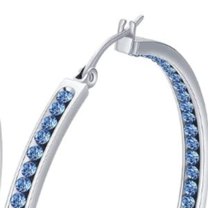 Light Blue Silver Hoop Earrings CZ Rhinestone Channel Crystal Big 2" Hoops New