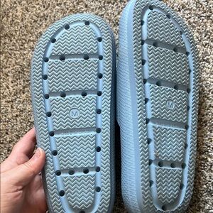 Comfortable light blue slide sandals. Perfect for casual wear.