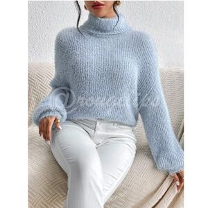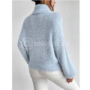 Light Blue Soft Fuzzy Turtleneck Pullover Sweater Long Sleeve