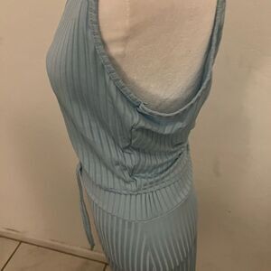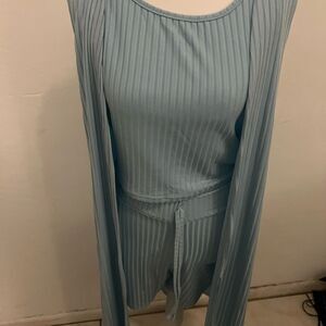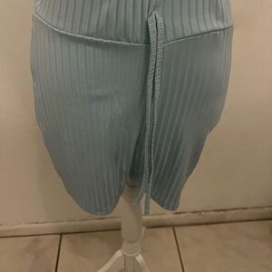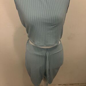 Stylish light blue striped crop top and shorts set. Perfect for casual outings.Three pieces