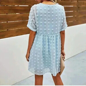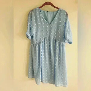 Light Blue Textured Dot Babydoll Dress - Size Medium