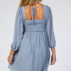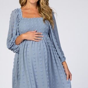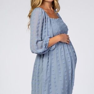 Light Blue Textured Dot Smocked Square Neck Chiffon Maternity Dress