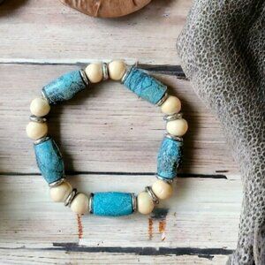 Love bluish turquoise colored bracelet with ivory and silver spacers. Newly hand made.