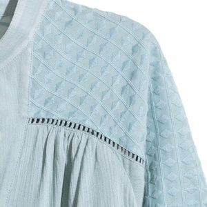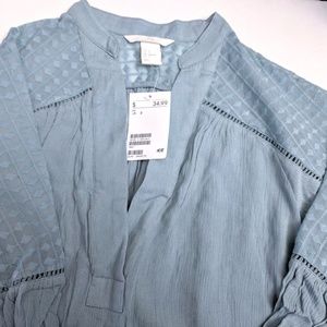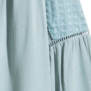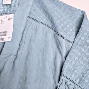Wide-cut blouse in a crinkled, woven fabric. V-neck, embroidered, slightly sheer section at shoulders, and long sleeves with elasticized cuffs.