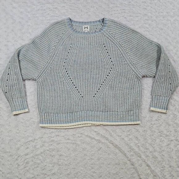 Light Blue White Pullover John And Jenn Womens Medium Sweater Knit cozy comfy