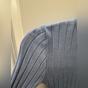 This Light Blue Wide Ribbed Mock neck Turtle Neck Sweater is in perfect condition. The material feels very quality and expensive. In perfect condition and worn once. Very flattering color and cut. The perfect dupe of JCREW sweater!!