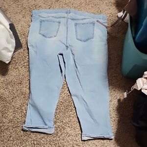 Stylish and comfortable light blue jeans perfect for any casual outing. These jeans offer a flattering fit and versatile style. Boyfriend cut with. Distressing on the front of the jeans. plus size 24w