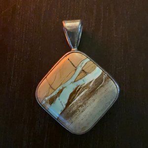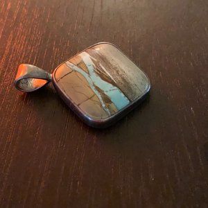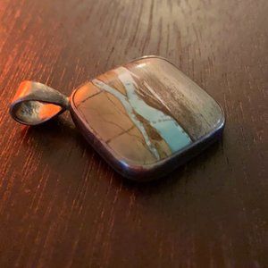 Light Blue and Brown Stone Large Square 925 Silver Pendant