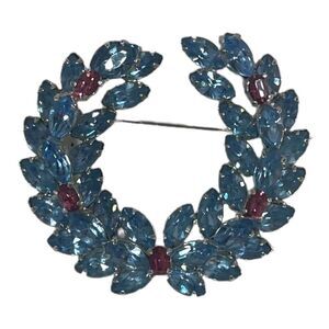 Light Blue Topaz Amethyst Christian Dior By Kramer Rhinestone Wreath Brooch 2"