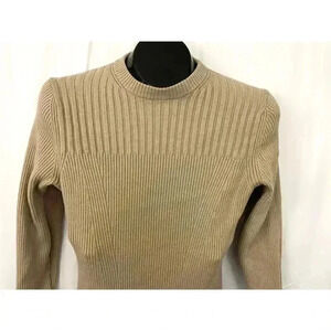 Light Brown Long Sleeve Ribbed Sweater Dress MEDIUM Pullover Prologue