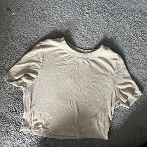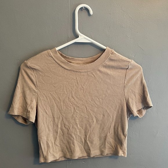 Medium Light Brown/ Tan Ribbed Crop Top. Stretchy but fitted and comfortable material