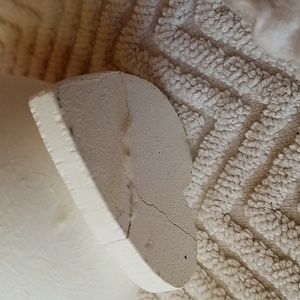 About 4 1/2" tall. Made from a light bulb. nice Vintage. Handmade. He stands on a white heart shaped piece of wood. cracks in wood. Doesn't affect anything. there is a chip in paint in the back. see pix. cute as can be. bundle for deals.