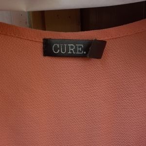 Pink light and breezy brand CURE a bit see through top with back slit followed by 3 cute button (for show) perfect for the beach theow over or even dress it up on a hot summer night