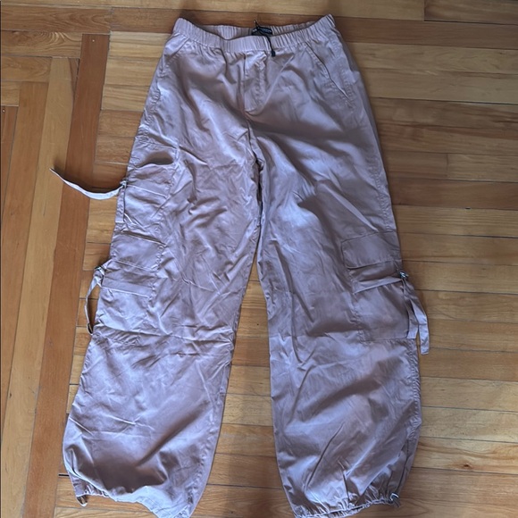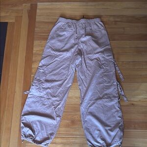 Stylish pink/mauve pink cargo pants with adjustable ankle ties. Perfect for casual wear.