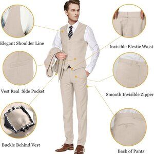 Features: A sleek, modern slim-fit suit set that includes a blazer, vest, pants, and a high-quality neck tie — all in one! The 3D draping cut offers a tailored, flattering fit that makes you stand out. Versatile for both formal and semi-casual occasions, this suit is all about presenting your best look effortlessly.