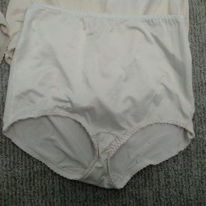 ADONNA TAILORED STRETCH SATIN LIGHT CONTROL BRIEF. 5 pair - beige, off white, blush. Sz XL , Nylon/Spandex with 100% white cotton crotch. These are great brief style panties with a little bit of support. In lovely condition, appear unworn. Waist approx. 11 inches unstretched lying flat.