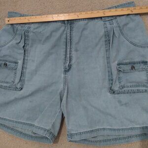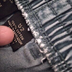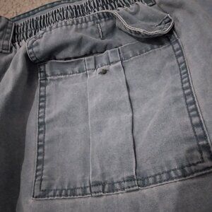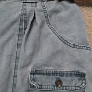 Light blue denim Cargo pockets As pictured 1 pocket missing button Elastic waist
