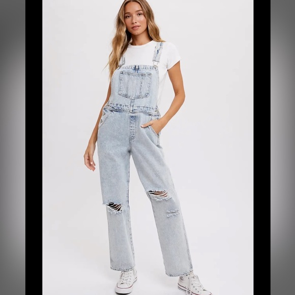 Light Distressed Ripped Overalls