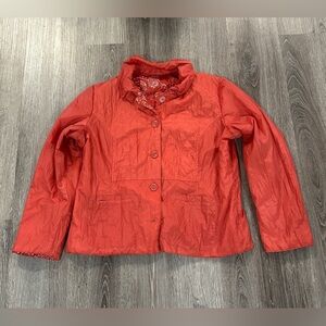Stylish red jacket with a paisley pattern. Perfect for adding a pop of color.