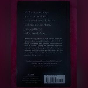 Explore the poetic world with 'Light Filters In' by Caroline Kaufman. A beautifully designed cover with floral accents. Hardback.