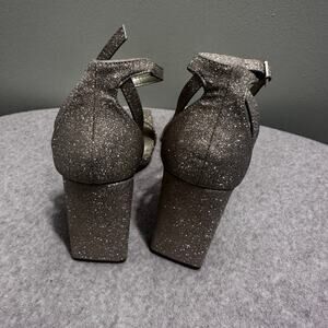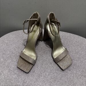 Light Gold Sparkle Open Toe ankle strap Chunky High Heel Shoes Size 6.5