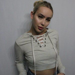 Light gray crop top with tie strings. Size small and in great condition.